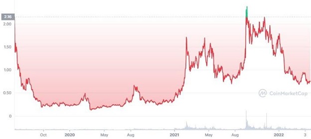 Ripple (XRP) tops our list of best cheap crypto under $1 to invest in 2022 because of its revolutionary technology and the fact that it is an established coin. It seeks to revolutionize the banking sector by eventually replacing SWIFT as the preferred interbank payment and communication network.