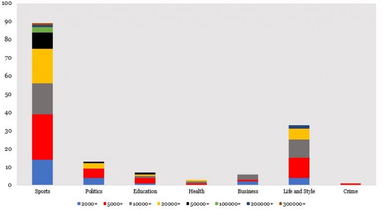These results suggest that people searched and read what appealed to them during the period of analysis based on their needs. For instance, within sports category, people searched and read foreign football matches and players than local ones. Foreign musicians and artistes occupied people’s mind when they sought information or read the news within the life and style category.