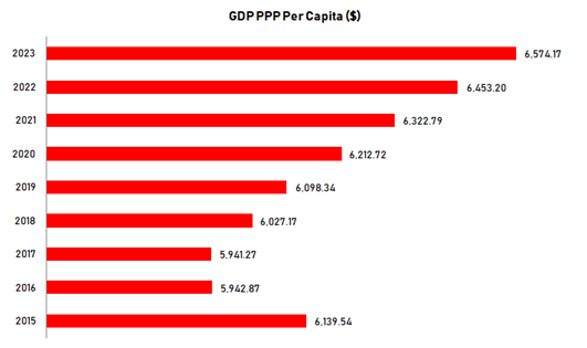 Analysis further shows that the population and PPP grew negatively during the period. A 46.0% reduction in PPP was found based on the population growth rate, indicating the low contribution of the populace to the economy and earning of the income that was not sufficient to make a standard living. Analysis specifically establishes that during the period, the average population was 188,461,404, while the average GDP PPP per capita was $6,012.71.
