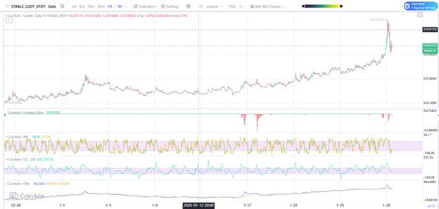 Stable is one of the trending coins this week and possibly one of the top cryptocurrencies to buy today. Over the past seven days, Stable has gained 30% in value, hitting $0.025.