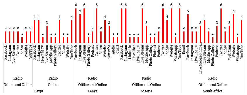 According to a variety of sources, these countries have long been Africa’s largest media markets. In these countries, the media ecosystem is complex and relatively advanced in terms of content production and distribution to the public. As previously stated, new technologies are influencing how media organizations and professionals produce and disseminate what the public wants. This has been specifically driven by the Internet, smart devices, and the constant innovation of social media owners.