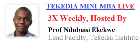 We turn sole proprietors into entrepreneurs, salespeople into growth makers, project leads into project champions, and small businesses into startups. Passing through our program adds a new strand called GROWTH in the DNA of your business. Experience Tekedia Live, hosted 3x weekly by Ndubuisi Ekekwe. Join us here.