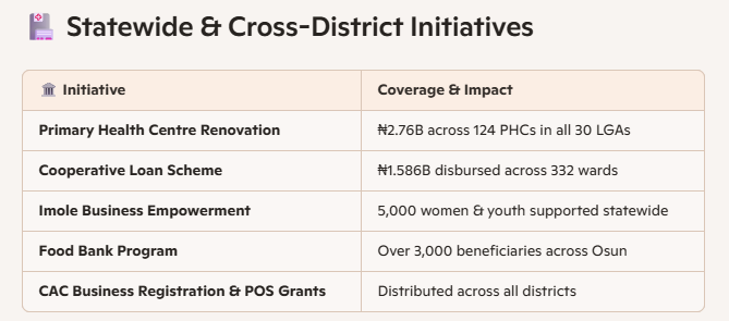 Equity sometimes justifies unequal spending when economic hubs require heavier investment. However, perceptions of fairness matter in a state with diverse constituencies. Residents in Oriade or Ifedayo occasionally point to limited visible footprints, fuelling quiet concerns that resource flows tilt toward the inner ring of LGAs. A statewide commitment to balanced visibility will determine whether the narrative remains one of inclusion or of quiet grievance.