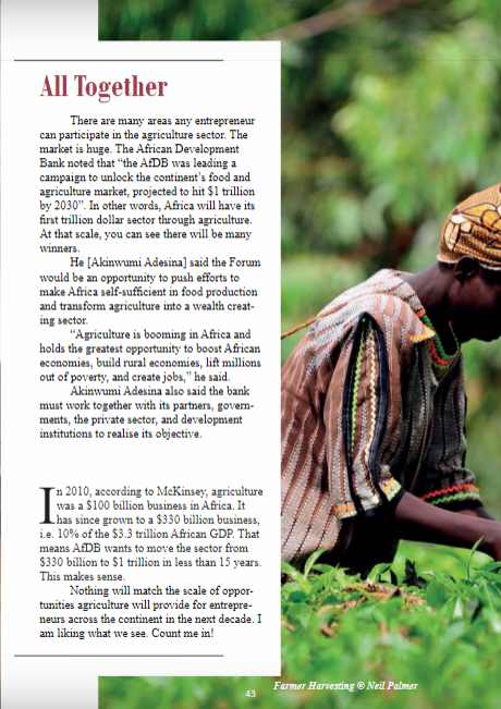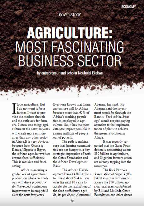 The team at Boundless has one of our articles as cover page. You can read it here. The piece was titled “Agriculture: Most Fascinating Business Sector” and was adapted from this one. You will like what they did, a far superior usage of Mama Charlie grammar. People, you can be a farmer without farming. You can wear your blazers and ties and still participate in Africa’s agriculture.
