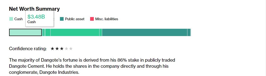 I want you to ponder on this: Aliko Dangote is worth about $19.2 billion. He is up by $1.44 billion since Jan 2021 in this year of the super-rich. Then the big one, according to Bloomberg: Dangote holds $3.48 billion in cash!