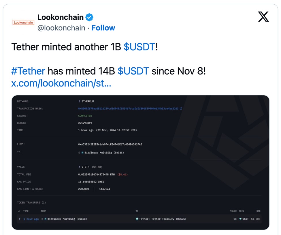 However, despite not impressing on the price charts, TRON price has been steadily growing its ecosystem. It now has the world’s third-largest total value locked (TVL) in DeFi with $8.01 billion and has been closing down on Solana, which is less than $1 billion ahead. TRON’s daily active addresses have also been consistently high and have sometimes been twice as high as the next best network. This metric is handed a big boost by Tether activity; the top stablecoin has $62 billion worth of USDT on TRON. In November alone, Tether minted $14 billion worth of USDT on the network.