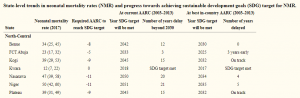 One of the researches published by the academics in 2019 indicates that the Kwara State is the only state in the North-Central region that has met the neonatal mortality rates target. According to the research, “some states are close to or have met both neonatal mortality rate (NMR) and under-five mortality rates (U5MR) targets, while others are projected to meet the targets as late as 2088 (58 years delayed). Between 850,000 and 1.89 million neonatal deaths could be averted between 2018 and 2030, while 3.1 million to 5.96 million under-five deaths could be averted over the same period.”