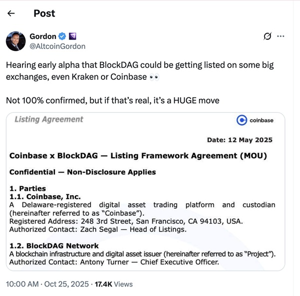 The leaked documents show these aren’t casual talks. The Coinbase MOU reportedly outlines BDAG/USDT and BDAG/USD pairs as “Pairs Considered”, with plans for due diligence and marketing collabs. The Kraken side looks even more solid: a signed “Cooperation Agreement”. This document allegedly confirms $300,000 for technical integration, $300,000 for marketing, and a $300,000 liquidity deposit. This preparation is why many call BDAG the best crypto to buy in 2025.