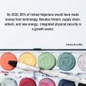 By 2030, 80% of richest Nigerians would have made money from technology. We will also see a shift of wealth concentrated in the age...