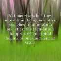 Economic emancipation happens when capital begins to pursue talent to accelerate efficiencies in the factors of production and human welfare through fixing market frictions...