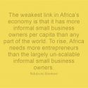 The weakest link in Africa’s economy is that it has more informal small business owners per capita than any part of the world. To...