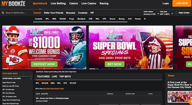 - MyBookie – $500 welcome bonus & extensive prop bets available