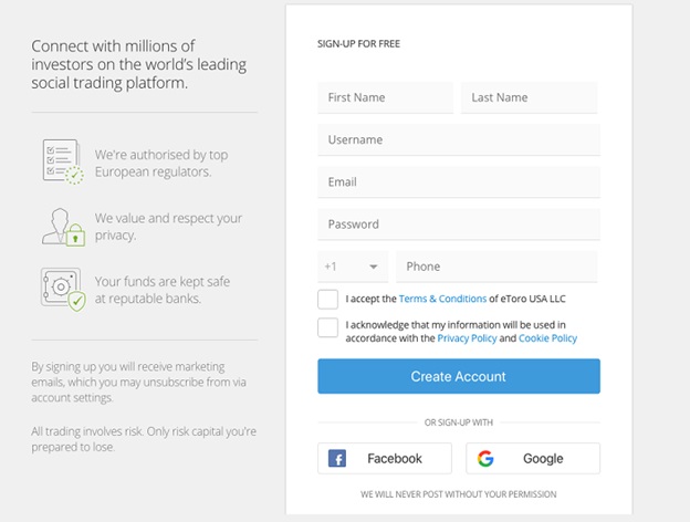 Opening an account with eToro takes less than five minutes: –