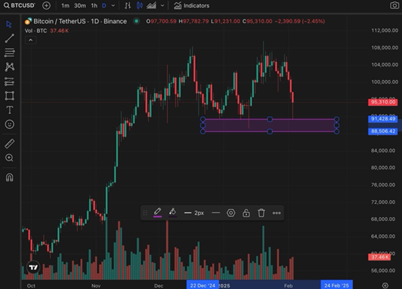 Bitcoin is hovering around the $95K mark at the time of writing, with the $88K-$90K zone acting as its crucial resistance. A drop below that could drop the Bitcoin value enough for it to find support at Tom Lee’s predicted $70K mark. However, it is likely that a panic rally will hit soon.