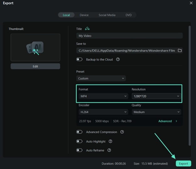 - Step 5. Choose the Resolution and Format of the Lyric Video. Finally, choose the “Format” and “Resolution” you want for the video and hit the “Export” button to download the video.