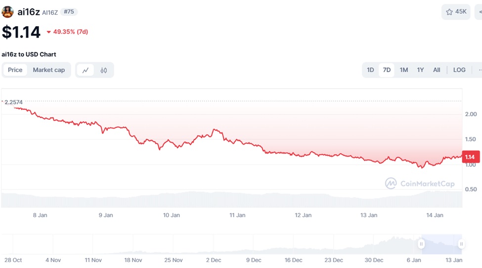 In terms of price action, AI16Z has been subject to the same level of volatility as other tokens. While it lost over half its value in a week, recent charts show that it is making a comeback. The craze around AI may be enough for this to become one of the best meme coins on the market.