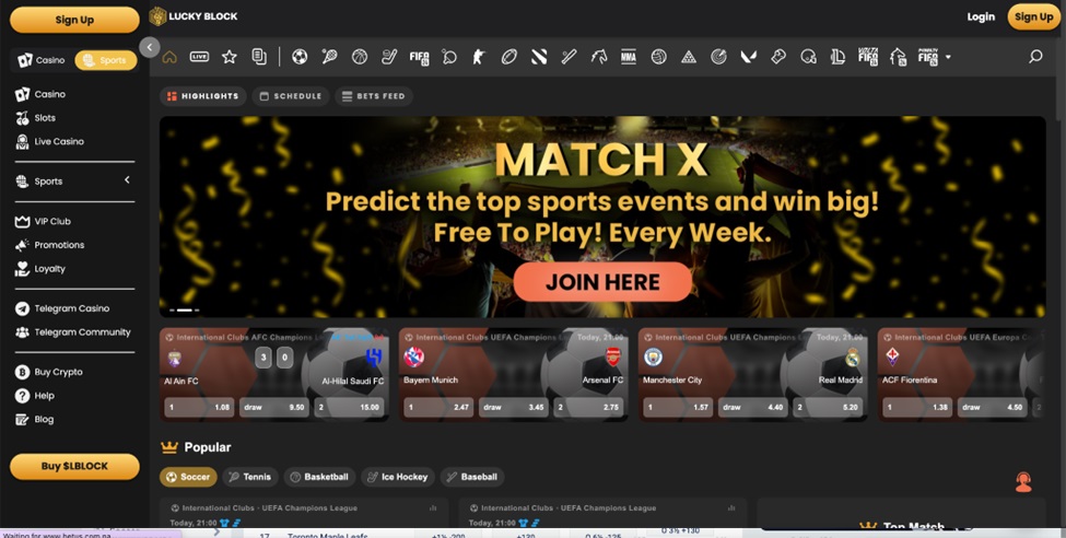 At Lucky Block, users enjoy a premier sports betting experience designed with their needs in mind. The website features intuitive navigation, allowing users to effortlessly explore NFL betting markets, upcoming games, and crucial information like odds and betting options. With a clean and user-friendly layout, the interface ensures a clutter-free experience, complete with well-organized sections dedicated to different types of NFL bets. Clear headings, labels, and visual cues guide users seamlessly through the betting process, empowering them to make informed decisions with ease.