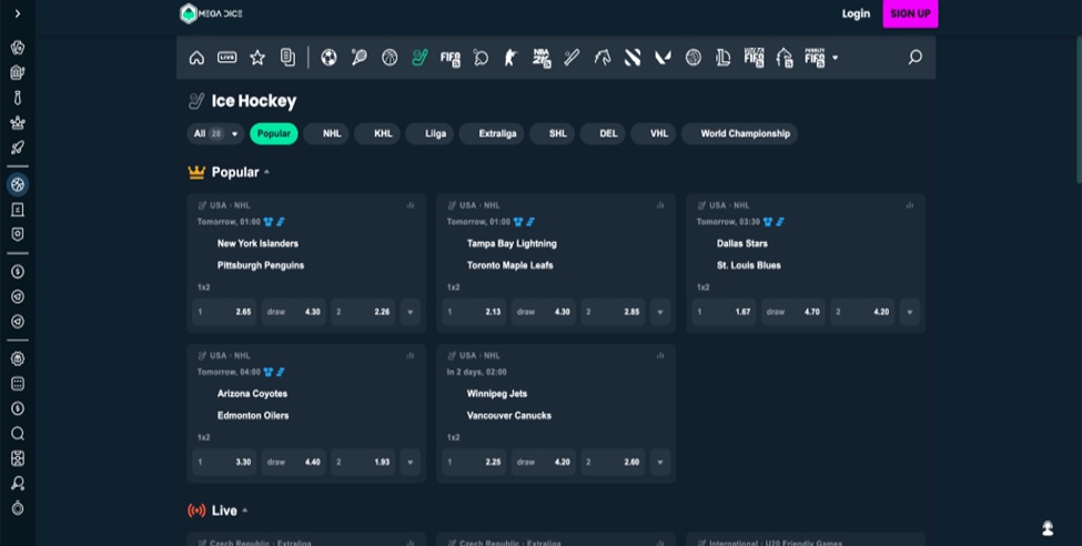 - Mega Dice – Best NHL Betting On Telegram