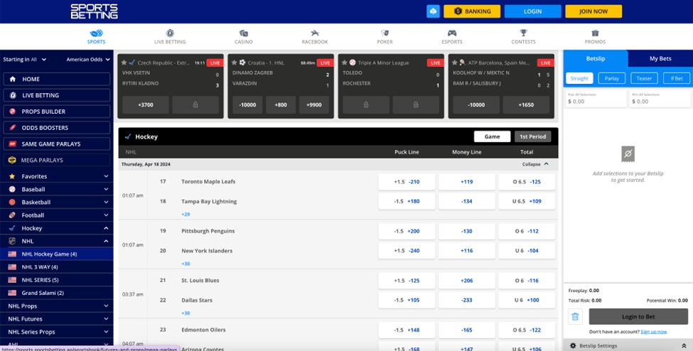 - Sportsbetting.ag – Most Reliable Sportsbook for NHL Betting