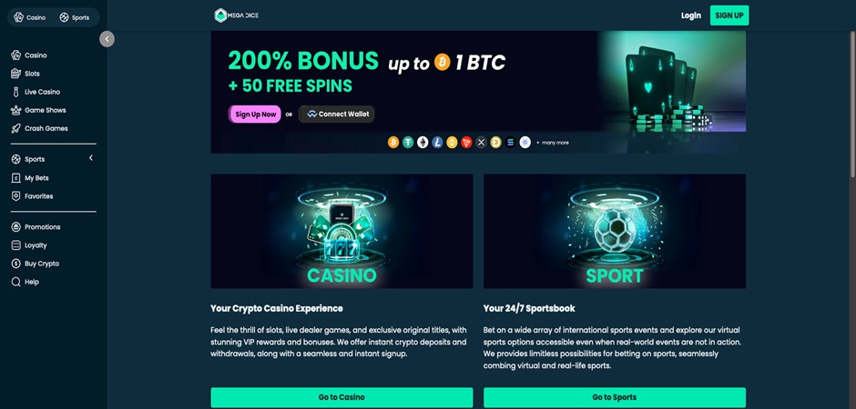 - Mega Dice – Pioneering Innovation in Online Gaming! Generous 200% bonus worth up to AUD 52,400 (1 BTC), 50 free spins, and a complimentary AUD 8 sports bet