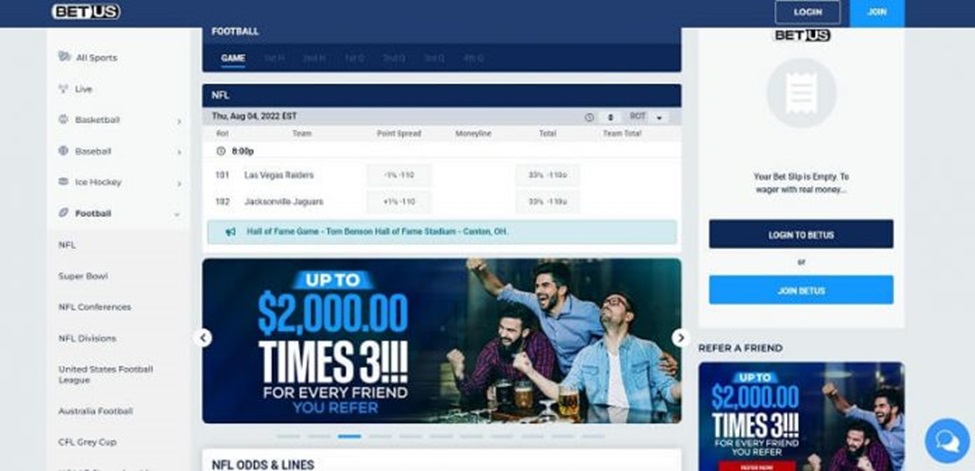 With hundreds of football betting opportunities, including props, point spreads, totals, and moneyline markets, BetUS is one of the best North America’s premier sportsbooks.