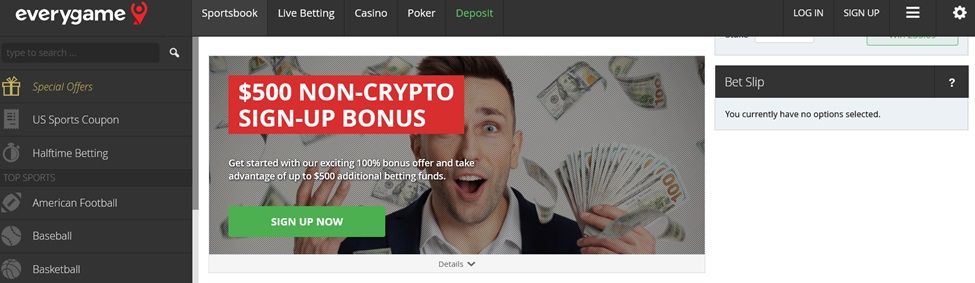 - Everygame – $500 Deposit Offer For New Players