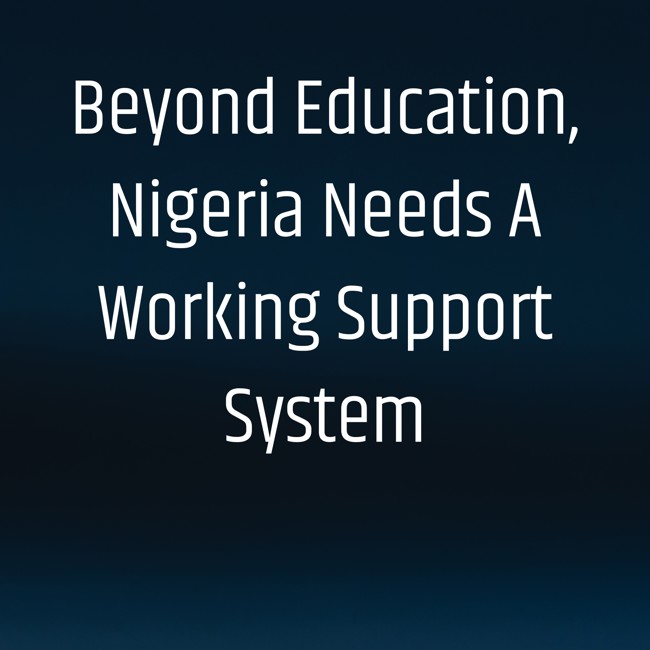 In Africa and specifically in Nigeria, the “government” over decades has not lived to replace that communal African system. Yes, the support system is low and that is one of our problems; no education can fix that if we hope to advance as a people.