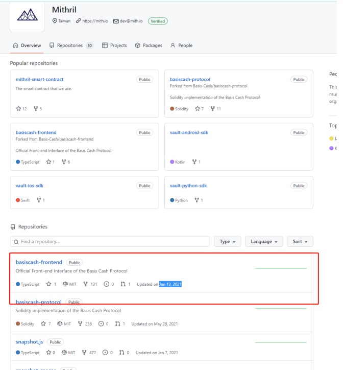 Some big Vs claim to have bought MITH because of its high technology. I took a look, Mitril last tweeted on January 7, 2021, and it’s Github account was last updated on July 13, 2021.