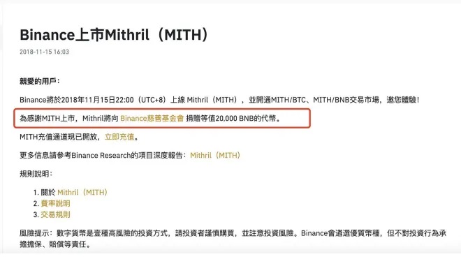 After Huang Licheng’s coin MITH was delisted by Binance, he began to defend his rights and demanded the return of the 200,000 BNB deposit when it was listed. The announcement in 2018 showed that Mithdotio donated 20,000 BNB to the Binance Charity Fund at that time, so did it give 200,000 BNB or 20,000 BNB?