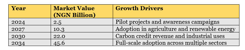 Nigeria’s biochar market is still in its infancy, but the potential is staggering. Over the next decade, the market is projected to grow exponentially. With over 70% of Nigerians engaged in farming, the demand for soil enhancers like biochar will only rise. Nigeria aims to reduce greenhouse gas emissions by 47% by 2030. Biochar’s carbon-sequestration properties align perfectly with this goal. As Nigeria diversifies its energy mix, biochar’s by-products can contribute to biomass and bioenergy solutions. In 2024, the biochar market is estimated to be worth ?2.5 billion. By 2034, this could surge to ?45.6 billion, creating jobs, improving livelihoods, and reducing environmental pollution.