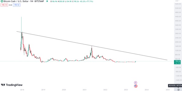 With experts predicting Bitcoin could reach $100,000 by the end of 2024, other coins will likely climb too. However, as we can see from the Bitcoin Cash price chart below, BCH could not regain its 2017 ATH in the 2021 bull market.