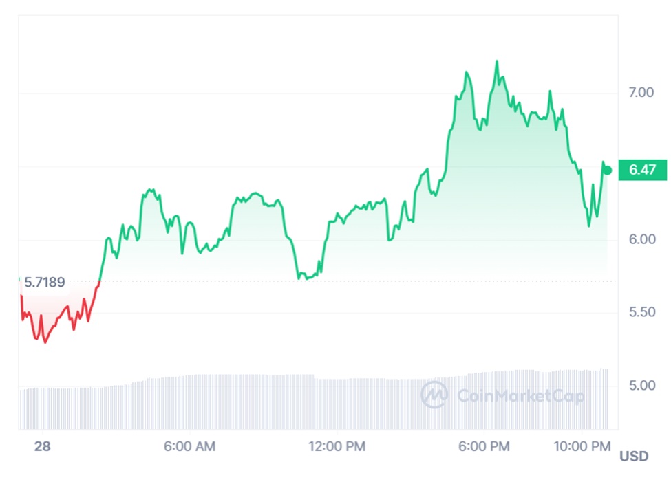 $LAND token saw a massive jump of nearly 200% in the last seven days reaching the recent highest trading price of $6.47. The weekly range for the token was $1.2 to $7, making it one of the top gainers across the crypto market with a 480% jump. In the yearly time frame, the token price has gone 4x. This came in the wake of the ripple effect created by BlackRock’s foray into the tokenization space.