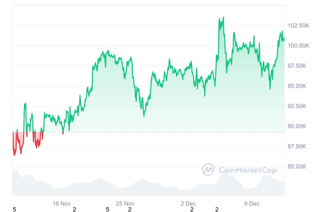 In fact, Bitcoin briefly hit $101,000 on December 12, at which point the price consolidated downwards at press time.