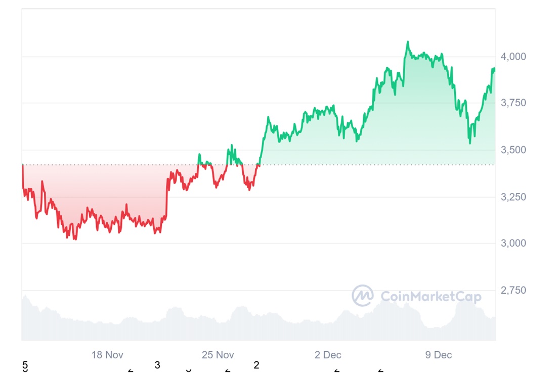 With its recent breakout towards $4,000 and above, Ethereum remains bullish in its price outlook.