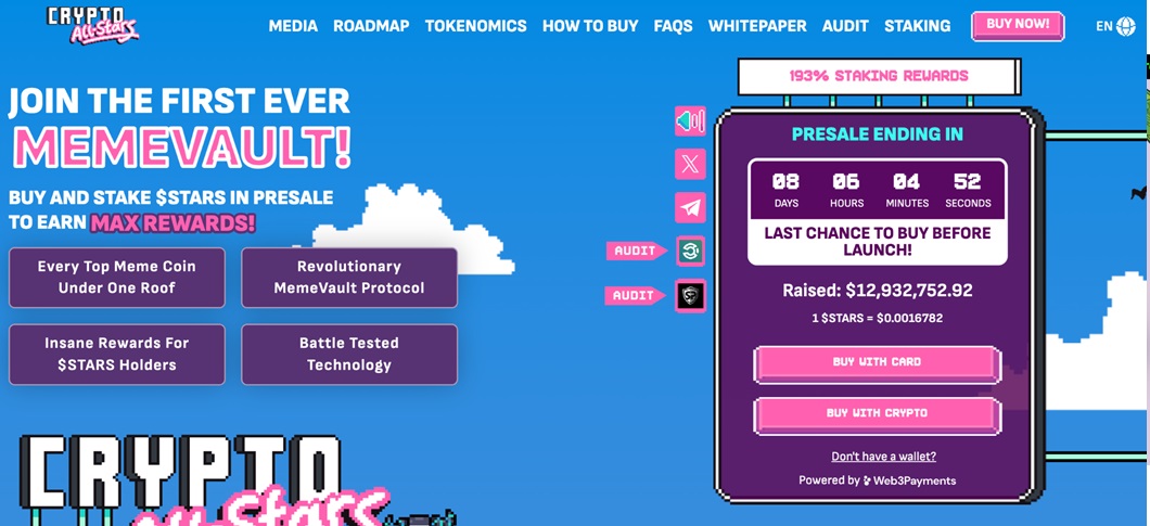The Crypto All-Stars ($STARS) presale has raised nearly $13 million so far, showing massive community traction and support.