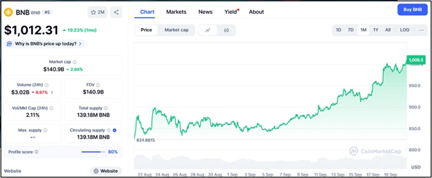 BNB Approaches $1,000