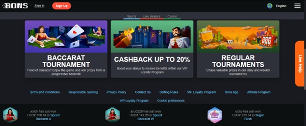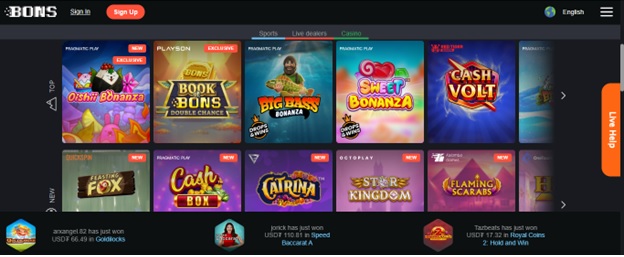 Once you have signed up and made a deposit, it is time to start playing. Bons Casino has hundreds of games, including sports gambling, so that you won’t run out of options. The best part is that Bons Casino has a 20% cashback, which means gamers can recoup some of their losses if things don’t go their way.