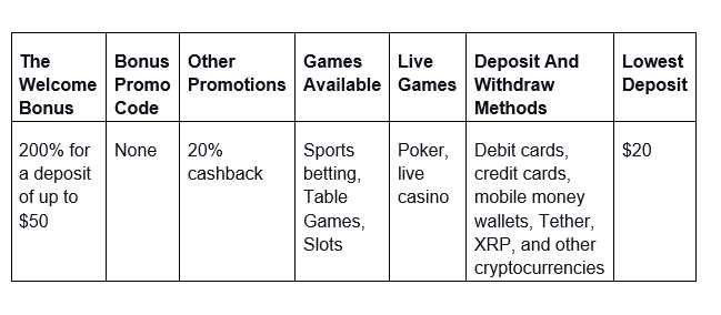 - For deposits of $20 to $49, gamers get a welcome bonus of 200% matched deposit
