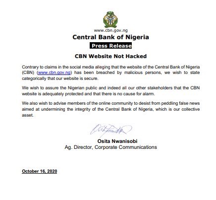 The Anonymous group, an online network known for launching cyber attacks against government institutions, has claimed responsibility for bringing down the website of the Central Bank of Nigeria. As I type, CBN website – https://www.cbn.gov.ng/ – is offline. I am told that market data is also not accessible. Largely, the central bank of Nigeria is cut-out of the global internet.