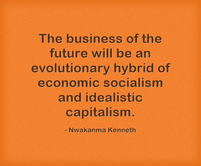 It will be an evolutionary hybrid of economic socialism and idealistic capitalism.