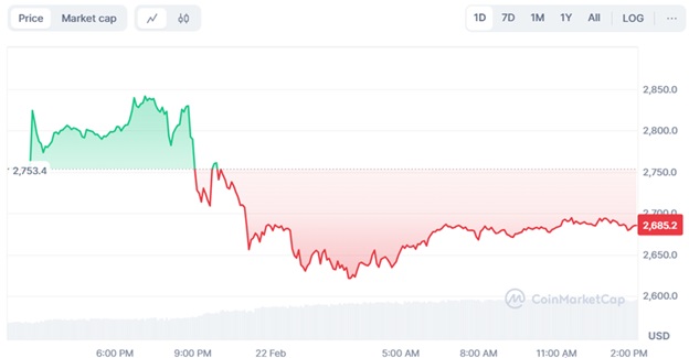The incident has caused major market disruption, with Ethereum dropping 6% in a day as bearish sentiment grows. ETH fell from $2,828 early on and has hovered around $2,680 since. The downturn is also impacting other tokens.