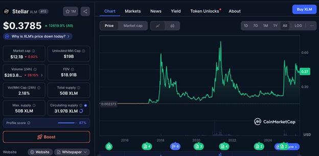 At around $0.37, Stellar remains at half the price of its previous peak nearing $0.70. However, on-chain data indicates a steady increase in active accounts and daily transactions. While not as explosive in performance as some newer chains, XLM’s consistent growth reflects its practical utility. The network has also leaned into stablecoin integrations, making it a quiet enabler of everyday cross-border value transfer.