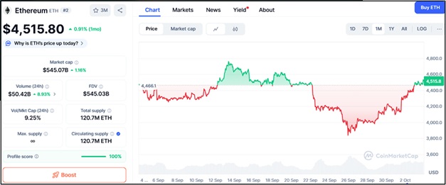 Ethereum remains the backbone of the crypto economy. With a trading price of $4,400, it continues to dominate in DeFi, NFTs, and Layer-2 scaling solutions. Institutional adoption of ETH has also been growing, adding strength to its long-term forecast.
