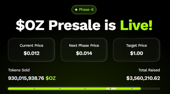 Crypto markets are showing renewed energy as Cardano (ADA), Ethereum (ETH), and Solana (SOL) continue to rally. Investors are optimistic about strong gains for these top altcoins, with ADA trading at $0.854, ETH at $4,400, and SOL at $230. Analysts forecast meaningful upside for each, yet their projected returns pale in comparison to the 100x outlook for Ozak AI (OZ). Currently in its Stage 5 presale at $0.01, Ozak AI has already raised over $3.5 million and sold 925 million tokens, with its momentum making it one of 2025’s most talked-about investment opportunities.