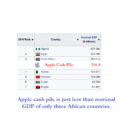 Apple cash pile of $256.8 billion greater than nominal GDP of any African nation...