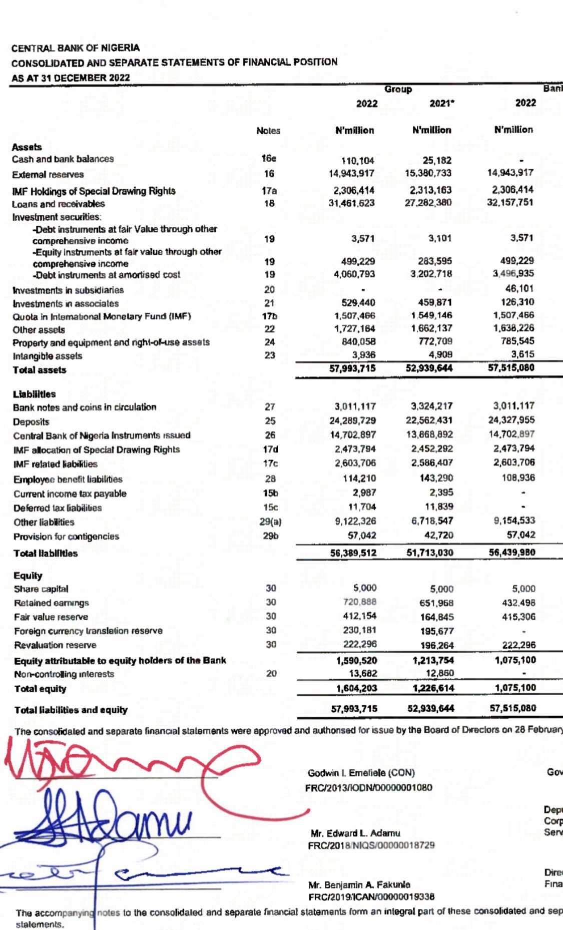 The Total Assets of CBN (Group) stands at ~N57.99 trillion while Total Liabilities are ~N56.34 trillion, giving a decent Equity of ~N1.604 trillion, as at Dec 31 2022. By accounting standard (at least to Intermediate Level of ICAN), this is not a state of bankruptcy. That said, the rate of growth in the Liabilities was not prudent, and Nigeria has to cut that down.