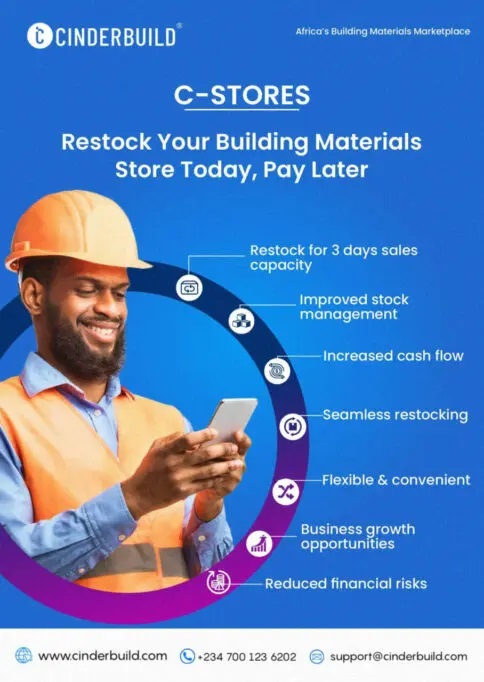 But now, something amazing is here: with CinderBuild Inc. mortgage credit card, you can take the loan for that project, and it will help supply every material you need for that construction. Simply, it unifies the core elements of building and construction in Africa: the fund and the materials!