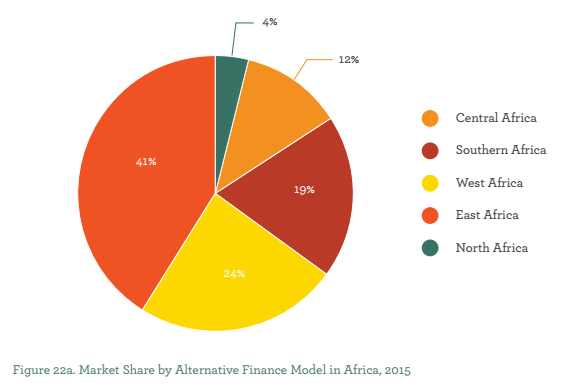 - In Africa, 90% of online alternative finance originated from platforms headquartered outside of the continent, while in the Middle East the reverse is true with 93% of online funding originating from home-grown platforms in the region.