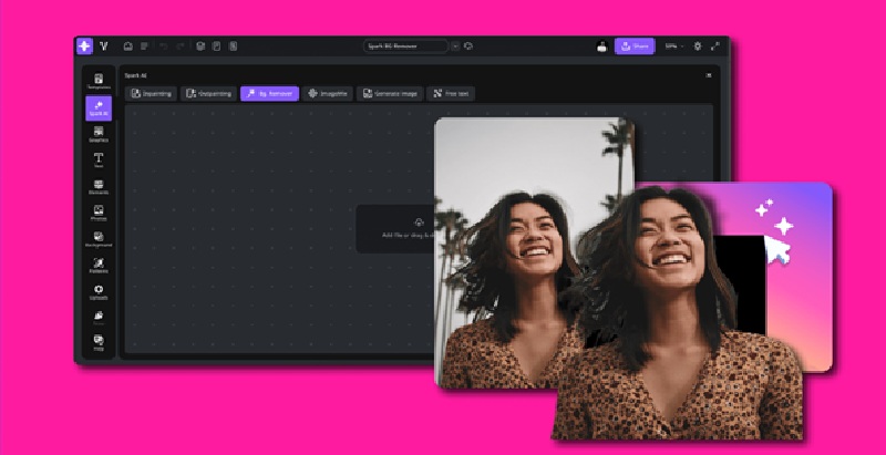 There are hundreds of various backgrounds available in Studio, from solid colors to colorful frames, from cinematic backgrounds to gradients and pastels. Also, one can choose to remove the background if the design requires it.
