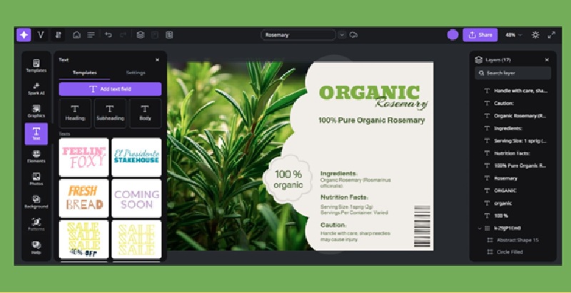 To speed up the design process, Studio offers premade font sets for the designs. Besides that, design templates come with typography layouts that are legible and harmoniously matched.
